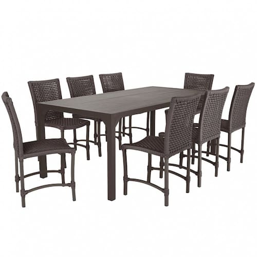Jogo 8 Cadeiras Cannes Corda Náutica e Mesa Retangular Ripada 2,00m em Alumínio para Edícula, Jardim, Área, Varanda, Cozinha - Pintura Marrom