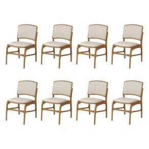 AS IMAGENS SÃO MERAMENTE ILUSTRATIVAS E PODEM SOFRER VARIAÇÕES DE COR E PEQUENOS DETALHES DE ACORDO COM O SEU MONITOR, ILUMINAÇÃO DO AMBIENTE E ATÉ MESMO A SUA PERCEPÇÃO VISUAL.Jogo 8 Cadeiras de Jantar FlorenÃa em Madeira Jequitibà Natural Encosto em Tecido Premium Linho Bege