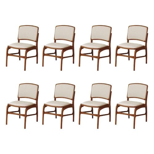 AS IMAGENS SÃO MERAMENTE ILUSTRATIVAS E PODEM SOFRER VARIAÇÕES DE COR E PEQUENOS DETALHES DE ACORDO COM O SEU MONITOR, ILUMINAÇÃO DO AMBIENTE E ATÉ MESMO A SUA PERCEPÇÃO VISUAL.Jogo 8 Cadeiras de Jantar FlorenÃa em Madeira Jequitibà Terra Encosto em Tecido Premium Linho Bege