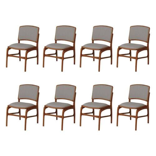 AS IMAGENS SÃO MERAMENTE ILUSTRATIVAS E PODEM SOFRER VARIAÇÕES DE COR E PEQUENOS DETALHES DE ACORDO COM O SEU MONITOR, ILUMINAÇÃO DO AMBIENTE E ATÉ MESMO A SUA PERCEPÇÃO VISUAL.Jogo 8 Cadeiras de Jantar FlorenÃa em Madeira Jequitibà Terra Encosto em Tecido Premium Linho Cinza