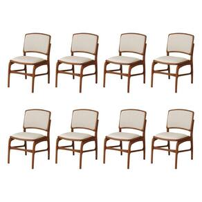 AS IMAGENS SÃO MERAMENTE ILUSTRATIVAS E PODEM SOFRER VARIAÇÕES DE COR E PEQUENOS DETALHES DE ACORDO COM O SEU MONITOR, ILUMINAÇÃO DO AMBIENTE E ATÉ MESMO A SUA PERCEPÇÃO VISUAL.Jogo 8 Cadeiras de Jantar FlorenÃa Jequitibà Terra Encosto em Tecido Premium em Linho Bege