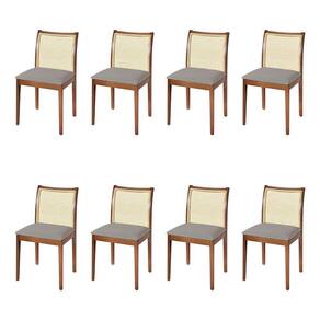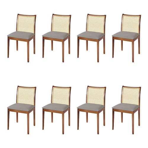 AS IMAGENS SÃO MERAMENTE ILUSTRATIVAS E PODEM SOFRER VARIAÇÕES DE COR E PEQUENOS DETALHES DE ACORDO COM O SEU MONITOR, ILUMINAÇÃO DO AMBIENTE E ATÉ MESMO A SUA PERCEPÇÃO VISUAL.Jogo 8 Cadeiras de Jantar Juliana Jequitibà Terra em Madeira MaciÃa Encosto Palha Linho Cinza