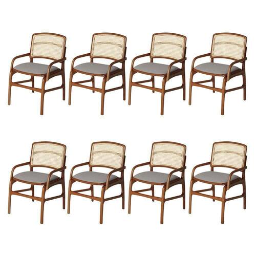 AS IMAGENS SÃO MERAMENTE ILUSTRATIVAS E PODEM SOFRER VARIAÇÕES DE COR E PEQUENOS DETALHES DE ACORDO COM O SEU MONITOR, ILUMINAÇÃO DO AMBIENTE E ATÉ MESMO A SUA PERCEPÇÃO VISUAL.Jogo 8 Cadeiras para Jantar FlorenÃa em Madeira Jequitibà Terra BraÃo Encosto Palha Linho Cinza