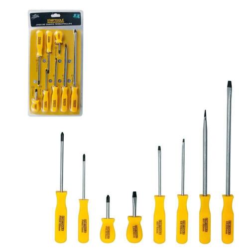 Jogo 8 Chaves de Fenda e Philips Escolha ideal para qualidade, durabilidade e praticidade Descubra o conjunto de 8 peças com cabo plástico resistente e ergonômico, projetado para conforto, firmeza e desempenho confiável em tarefas rápidas ou longas. Ideal para profissionais da área técnica e para uso doméstico.