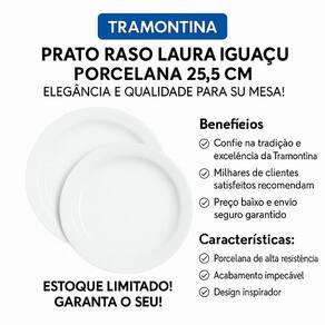 Uma peça coringa para quem deseja unir praticidade e sofisticação. Garanta já o prato raso Tramontina Laura e valorize cada refeição com mais beleza e resistência.