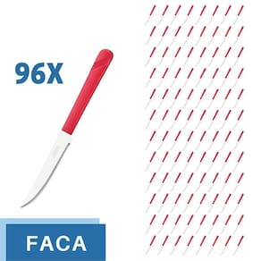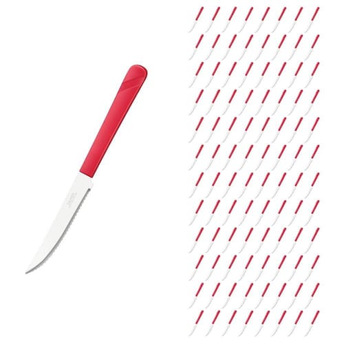 Conjunto de Facas As facas de mesa da linha Luna são um conjunto elegante e funcional para qualquer mesa de jantar. Com um cabo vermelho vibrante feito de plástico de alta qualidade, estas facas são confortáveis de segurar e fáceis de identificar em meio a outros utensílios de mesa. O aço inox de alta qualidade das lâminas garante que elas permaneçam afiadas por um longo tempo, enquanto o design elegante torna as facas uma adição atraente à sua coleção de utensílios de cozinha.