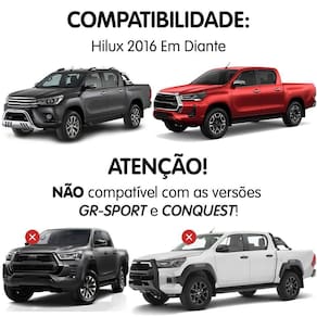 Compatível com: - hilux 2016 - hilux 2017 - hilux 2018 - hilux 2019 - hilux 2020 - hilux 2021 - hilux 2022 - hilux 2023 Atenção não compatível com as versões gr-sport e conquest