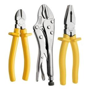 • O Alicate Pressão de 10 polegadas vai facilitar muito mais o corte, solda, lixa e outros trabalhos que precisem que o objeto esteja fixado. • O alicate de corte diagonal de 6 polegadas, muito utilizado para cortar fios e arames com uma ótima precisão. • Por fim, o alicate universal de 8 polegadas é muito versátil, pois ele une a função do alicate de bico e de pressão. Garanta já o seu kit e complete sua caixa de ferramentas!