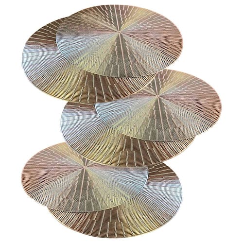 Jogo Americano 12 Peças Mesa Posta Mesa Redondo Linha Luxo Tamanho Grande Modelo Egípcio em PVC Cor: Dourado Especificações: Jogo Americano: Confeccionado em PVC, que garante mais qualidade e durabilidade ao produto