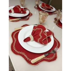 Jogo Americano 4 Peças Paris Vermelho Bordado Dourado