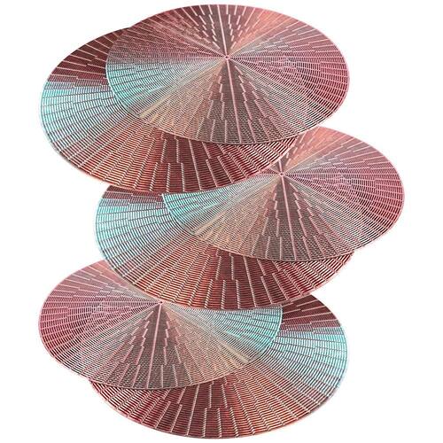 Jogo Americano 6 Peças Mesa Posta Mesa Redondo Linha Luxo Tamanho Grande Modelo Egípcio em PVC Cor: Rose Especificações: Jogo Americano: Confeccionado em PVC, que garante mais qualidade e durabilidade ao produto