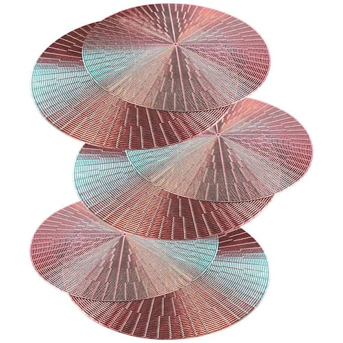 Jogo Americano 6 Peças Mesa Posta Mesa Redondo Linha Luxo Tamanho Grande Modelo Egípcio em PVC Cor: Rose Especificações: Jogo Americano: Confeccionado em PVC, que garante mais qualidade e durabilidade ao produto