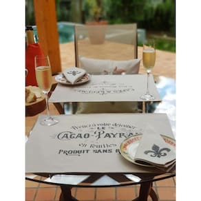 Jogo Americano Cacao Payraud - 4 Unidades O jogo americano vem com 4 unidades da mesma estampa. Feito em tecido 100% algodão, com toque suave. São 4 estampas lindas, originalmente vintage, que compõe o jogo. De puro algodão é muito prático de lavar e deixa sua mesa sempre elegante.