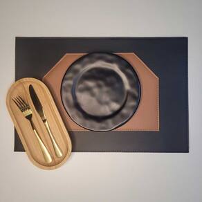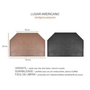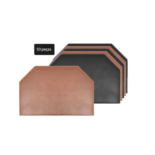 Lugar Americano Dupla Face composto por material sintetico que lembra o couro. O jogo americano é perfeito para cafeterias, bares e restaurantes. Excelente acabamento e super versatil, podendo usar dos dois lados. A textura do material é o grande diferencial, proporcionando aos ambientes requinte, sofisticaçao e praticidade. Para manter a durabilidade, limpe apenas com pano seco ou levemente umido e nao usar alvejante. Contem: Jogo Americano - 50 peças Medidas: 30 x 20 cm Composiçao: Material Sintetico