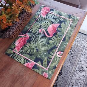 Especificações Marca: Lovely Sonhos Modelo: Jogo Americano Flamingo Bordado Acabamento: Canto Mitrado Tecido: Tecido 80% Algodão e 20% Poliéster Dimensões Jogo Americano: 50 x 36 cm Quantidade: 01 Cuidados: Não usar alvejantes. Lavar a mão. Secar na sombra. Guardar aberto