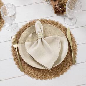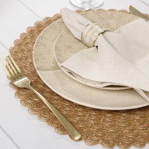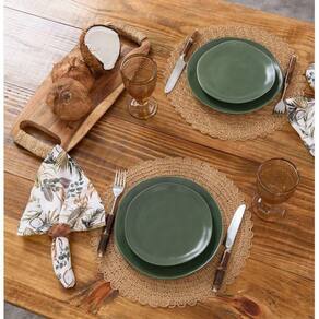 Jogo Americano Copa E Cia 6 Peças Ava Natural Jogo Americano Copa e Cia 6 Peças Ava Natural - Características Gerais do Produto: - Composição: 75% Polipropileno (Plástico) e 25 % Poliéster. - Detalhes: Kit Contém 06 peças.; Produto Flexível e Vazado.; Armazenar o produto aberto e na horizontal; São práticas e versáteis - Cuidados: Limpar Manualmente, Armazenar em Local Seco e Arejado.; Não Torcer, Amassar, Dobrar ou Molhar Totalmente o Produto.; Limpar o Produto Apenas com Pano Levemente Umedecido; Evitar contato com objetos cortantes ou superaquecidos.; Não utilizar solventes, abrasivos ou alvejantes. - Dimensões (cm): Diâmetro: 38 cm Acompanha o produto: - 6 Peças de Jogo Americano Garantia: - Sem Garantia