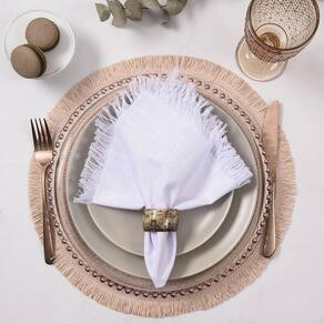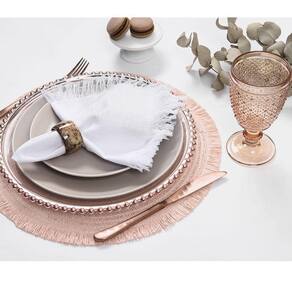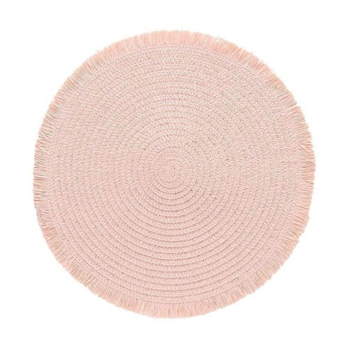 Jogo Americano Copa E Cia 6 Peças Lana Rosa Chá Jogo Americano Copa e Cia 6 Peças Lana Rosa Chá - Características Gerais do Produto: - Composição: 100% Fibra de Papel - Detalhes: Flexível.; Kit Contém 06 peças.; Possui Detalhe com Franjas.; Apesar de sua Composição ser a Base de Papel, o Produto não é Descartável. - Cuidados: Limpar Manualmente, Armazenar em Local Seco e Arejado.; Não Torcer, Amassar, Dobrar ou Molhar Totalmente o Produto.; Não Utilizar Solventes ou Abrasivos.; Limpar o Produto Apenas com Pano Levemente Umedecido; Evitar contato com objetos cortantes ou superaquecidos. - Dimensões (cm): Diâmetro: 38 cm Acompanha o produto: - 6 Peças de Jogo Americano Garantia: - Sem Garantia