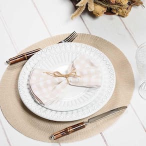 Jogo Americano Copa E Cia 6 Peças Serenity Areia Jogo Americano Copa e Cia 6 Peças Serenity Areia - Características Gerais do Produto: - Composição: 100% Poliéster. - Detalhes: Kit Contém 06 peças.; Produto Flexível.; Armazenar o produto aberto e na horizontal; São práticas e versáteis - Cuidados: Não Torcer, Amassar, Dobrar ou Molhar Totalmente o Produto.; Evitar contato com objetos cortantes ou superaquecidos.; Não utilizar solventes, abrasivos ou alvejantes.; Limpar manualmente com pano úmido e detergente neutro. - Dimensões (cm): Diâmetro: 38 cm Acompanha o produto: - 6 Peças de Jogo Americano Garantia: - Sem Garantia