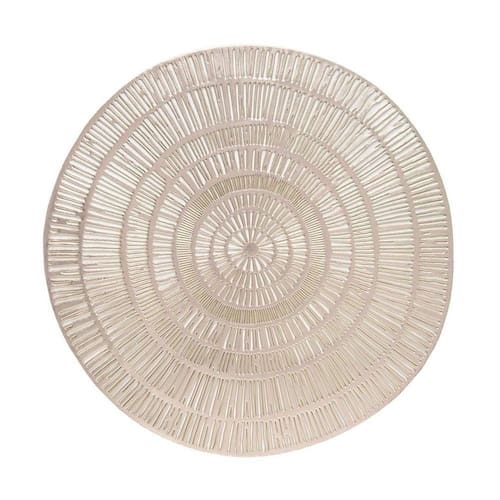 Jogo Americano Copa E Cia Avulso Concept Ethan Champagne Jogo Americano Copa e Cia Avulso Concept Ethan Champagne - Características Gerais do Produto: - Composição: 100% PVC. - Detalhes: Produto Flexível e Vazado.; Peça Vendida de Forma Avulsa (Individual).; Armazenar o produto aberto e na horizontal; São práticas e versáteis - Cuidados: Não Torcer, Amassar, Dobrar ou Molhar Totalmente o Produto.; Evitar contato com objetos cortantes ou superaquecidos.; Não utilizar solventes, abrasivos ou alvejantes.; Limpar manualmente com pano úmido e detergente neutro. - Dimensões (cm): Diâmetro: 38 cm Acompanha o produto: - 1 Peça de Jogo Americano Garantia: - Sem Garantia