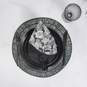 Jogo Americano Copa E Cia Avulso Concept Ethan Floresta Jogo Americano Copa e Cia Avulso Concept Ethan Floresta - Características Gerais do Produto: - Composição: 100% PVC. - Detalhes: Produto Flexível e Vazado.; Peça Vendida de Forma Avulsa (Individual).; Armazenar o produto aberto e na horizontal; São práticas e versáteis - Cuidados: Não Torcer, Amassar, Dobrar ou Molhar Totalmente o Produto.; Evitar contato com objetos cortantes ou superaquecidos.; Não utilizar solventes, abrasivos ou alvejantes.; Limpar manualmente com pano úmido e detergente neutro. - Dimensões (cm): Diâmetro: 38 cm Acompanha o produto: - 1 Peça de Jogo Americano Garantia: - Sem Garantia