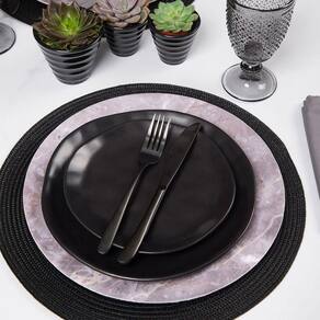 Jogo Americano Copa E Cia Avulso Luna Preto Jogo Americano Copa e Cia Avulso Luna Preto - Luna Características Gerais do Produto: - Composição: 75% Polipropileno (Plástico) e 25 % Poliéster. - Detalhes: Flexível.; Redonda.; Peça Vendida de Forma Avulsa (Individual).; São práticas e versáteis - Cuidados: Evitar contato com objetos cortantes ou superaquecidos.; Não amassar; Não torcer ou dobrar totalmente o produto.; Não utilizar solventes, abrasivos ou alvejantes.; Limpar manualmente com pano úmido e detergente neutro. - Dimensões (cm): Diâmetro: 38 cm Acompanha o produto: - 1 Peça de Jogo Americano Garantia: - Sem Garantia