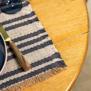 Jogo Americano Copa E Cia Avulso Manali Marinho Jogo Americano Copa e Cia Avulso Manali Marinho - Indian Collection Manali Características Gerais do Produto: - Composição: Algodão Reciclado; Juta - Detalhes: Fabricado na Índia.; Peça Vendida de Forma Individual.; Design Exclusivo Copa&Cia.; Franjas nas Bordas.; Fibras Naturais.; As cores podem sofrer pequenas alterações de cor, variando de monitor para monitor.; Os objetos que ambientam as fotos não acompanham o produto.; As fotos produzidas são apenas como sugestão de uso com as demais peças da coleção.; Por ser uma peça com fibras naturais, pode ocorrer pequenas variações de tonalidade. - Cuidados: Armazenar em local seco e arejado.; Evitar contato com objetos cortantes ou superaquecidos.; Não molhar; Não amassar; Não torcer ou dobrar totalmente o produto.; Não utilizar solventes, abrasivos ou alvejantes.; Limpar manualmente com pano úmido e detergente neutro. - Dimensões (cm): Comprimento: 48 cm; Largura: 33 cm Acompanha o produto: - 1 Peça de Jogo Americano Garantia: - 7 dias/30 dias contra defeito de fabricação