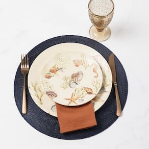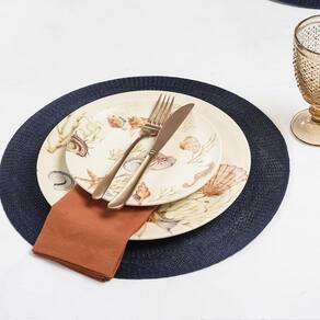 Jogo Americano Copa E Cia Avulso Serenity Marinho Jogo Americano Copa e Cia Avulso Serenity Marinho - Características Gerais do Produto: - Composição: 100% Poliéster. - Detalhes: Peça Vendida de Forma Avulsa (Individual).; Armazenar o produto aberto e na horizontal; São práticas e versáteis - Cuidados: Evitar contato com objetos cortantes ou superaquecidos.; Não amassar; Não torcer ou dobrar totalmente o produto.; Não utilizar solventes, abrasivos ou alvejantes.; Limpar manualmente com pano úmido e detergente neutro. - Dimensões (cm): Diâmetro: 38 cm Acompanha o produto: - 1 Peça de Jogo Americano Garantia: - Sem Garantia