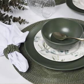 Jogo Americano Copa E Cia Avulso Serenity Verde Jogo Americano Copa e Cia Avulso Serenity Verde - Características Gerais do Produto: - Composição: 100% Poliéster. - Detalhes: Peça Vendida de Forma Avulsa (Individual).; Armazenar o produto aberto e na horizontal; São práticas e versáteis - Cuidados: Evitar contato com objetos cortantes ou superaquecidos.; Não amassar; Não torcer ou dobrar totalmente o produto.; Não utilizar solventes, abrasivos ou alvejantes.; Limpar manualmente com pano úmido e detergente neutro. - Dimensões (cm): Diâmetro: 38 cm Acompanha o produto: - 1 Peça de Jogo Americano Garantia: - Sem Garantia