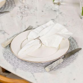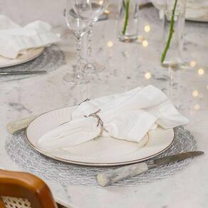 Jogo Americano Copa E Cia Avulso Starry Silver Jogo Americano Copa e Cia Avulso Starry Silver - Características Gerais do Produto: - Composição: Poliéster; Polipropileno - Detalhes: Peça Vendida de Forma Individual.; Design Exclusivo Copa&Cia.; As cores podem sofrer pequenas alterações de cor, variando de monitor para monitor.; Os objetos que ambientam as fotos não acompanham o produto.; As fotos produzidas são apenas como sugestão de uso com as demais peças da coleção. - Cuidados: Não Deixar de Molho.; Não recomendado limpar a seco.; Armazenar em local seco e arejado.; Evitar contato com objetos cortantes ou superaquecidos.; Não molhar; Não amassar; Não torcer ou dobrar totalmente o produto.; Não utilizar solventes, abrasivos ou alvejantes.; Limpar manualmente com pano úmido e detergente neutro.; Não secar ao sol.; Manter o produto na horizontal - Dimensões (cm): Diâmetro: 38 cm Acompanha o produto: - 1 Peça de Jogo Americano Garantia: - 7 dias/30 dias contra defeito de fabricação