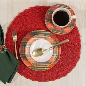 Jogo Americano Copa E Cia Avulso Starry Vermelho Jogo Americano Copa e Cia Avulso Starry Vermelho - Características Gerais do Produto: - Composição: Poliéster; Polipropileno - Detalhes: Peça Vendida de Forma Individual.; Design Exclusivo Copa&Cia.; As cores podem sofrer pequenas alterações de cor, variando de monitor para monitor.; Os objetos que ambientam as fotos não acompanham o produto.; As fotos produzidas são apenas como sugestão de uso com as demais peças da coleção. - Cuidados: Não Deixar de Molho.; Não recomendado limpar a seco.; Armazenar em local seco e arejado.; Evitar contato com objetos cortantes ou superaquecidos.; Não molhar; Não amassar; Não torcer ou dobrar totalmente o produto.; Não utilizar solventes, abrasivos ou alvejantes.; Limpar manualmente com pano úmido e detergente neutro.; Não secar ao sol.; Manter o produto na horizontal - Dimensões (cm): Diâmetro: 38 cm Acompanha o produto: - 1 Peça de Jogo Americano Garantia: - 7 dias/30 dias contra defeito de fabricação