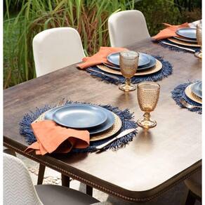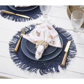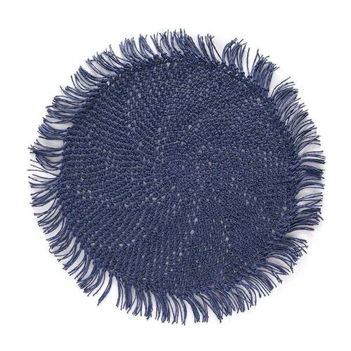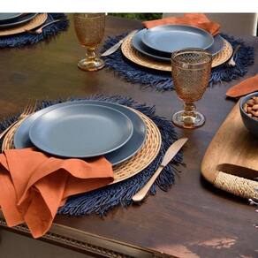 Jogo Americano Copa E Cia Avulso Tulum Marinho Jogo Americano Copa e Cia Avulso Tulum Marinho - Características Gerais do Produto: - Composição: 100% Fibra de Papel - Detalhes: Apesar de sua Composição ser a Base de Papel, o Produto não é Descartável.; Peça Vendida de Forma Avulsa (Individual).; Franjas nas Bordas.; Armazenar o produto aberto e na horizontal - Cuidados: Limpar Manualmente, Armazenar em Local Seco e Arejado.; Não Torcer, Amassar, Dobrar ou Molhar Totalmente o Produto.; Evitar contato com objetos cortantes ou superaquecidos.; Não utilizar solventes, abrasivos ou alvejantes.; Limpar apenas com pano úmido. - Dimensões (cm): Diâmetro: 35 cm Acompanha o produto: - 1 Peça de Jogo Americano Garantia: - Sem Garantia