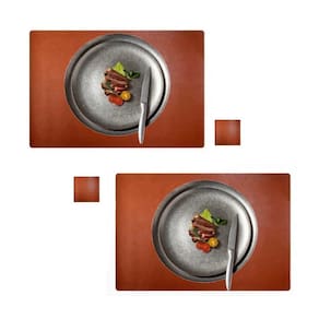 Jogo americano couro premium 2 unidades Cor: caramelo Tamano: 43x30 Jogo americano couro retangular + porta copos