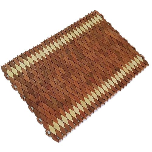 Jogo Americano de Madeira Retangular, Artesanal, 2 Cores, Madeira Clara