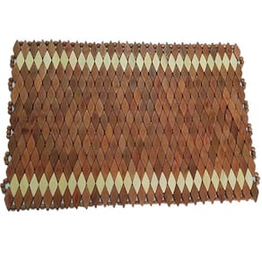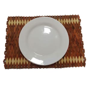Jogo americano RETANGULAR confeccionado em madeira, composto por peças pintadas e envernizadas, em 2 cores (marrom e marfim), em formato de losângulo, com acabamento nas bordas.