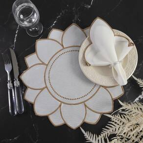 Jogo americano girassol bordado 12 peças - marfim A linha jogos americanos bordado possui um design elegante e charmoso com cores neutras e delicadas que dão um toque especial na mesa. Ele é versátil e combina com diversos tipos de ocasiões e compondo diferentes tipos de mesa. Devolvido em tecido, acabamento bordado. Complete o visual da sua mesa. Esse lindo americano alia perfeitamente qualidade e beleza. características:- 100% poliester - fácil higienização; - prático e versátil; - elegante e moderno; - acabamento bordado - quantidade de peças 12 peças itens inclusos:- 06 sousplat jogo americano de 40cm x 40cm - 06 guardanapos 35cm x 35cm composição:- material 100% poliester