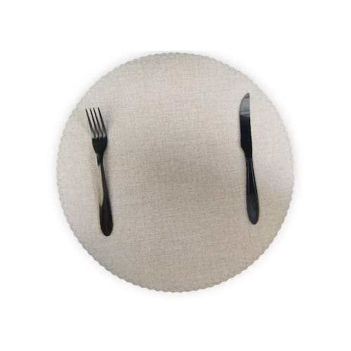 Jogo Americano Mesa Posta de Tecido Redondo Linha Luxo Tamanho Grande Cor: Bege Jogo Americano Redondo de Tecido - Sofisticação e Proteção para Sua Mesa Adicione charme e praticidade à sua mesa com o Jogo Americano Redondo de Tecido. Perfeito para o dia a dia ou ocasiões especiais, ele protege sua mesa contra manchas e arranhões, além de deixar a composição mais elegante e aconchegante. Principais Características: