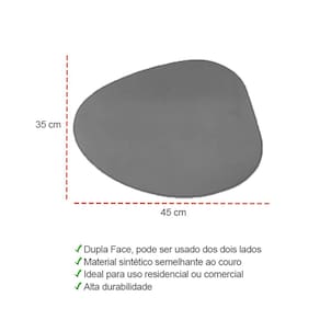 Jogo Americano em formato organico, dupla face. O lugar americano é composto por material sintetico semelhante ao couro. Excelente acabamento e super versatil, podendo ser utilizado dos dois lados. Facil de limpar é ideal para mesa de jantar, ou usar em escritorios como suporte de mesa. A textura do material é o grande diferencial, proporcionando aos ambientes requinte, sofisticação e praticidade. Para manter a durabilidade, limpe apenas com pano seco ou levemente umido e nao usar alvejante. Contem: Jogo Americano - 100 peças Dimensões: 35 x 45 cm Casacha é especializada em aventais profissionais e jogos americanos. Marca: CASACHA