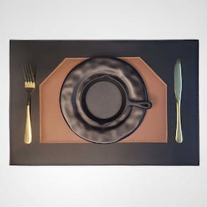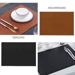 Jogo Americano Dupla Face composto por material sintético semelhante ao couro. Excelente acabamento e super versátil, podendo ser usar dos dois lados. Fácil de limpar é ideal para mesa de jantar, ou usar em escritórios como suporte de mesa. A textura do material é o grande diferencial, proporcionando aos ambientes requinte, sofisticação e praticidade. Para manter a durabilidade do produto lavar à mão, não alvejar e não secar em tambor.