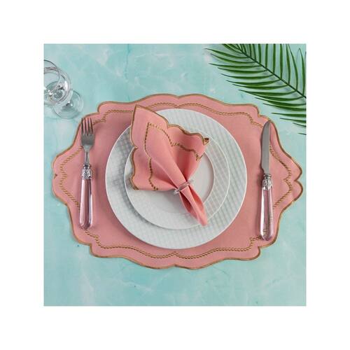 Jogo Americano Realeza 12 Peças Para Mesa De 6 Lugares Rosê Bordado Dourado