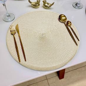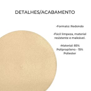 Feito com materiais de alta qualidade, este jogo americano não só protege a sua mesa de manchas e arranhões, mas também adiciona um charme discreto à sua decoração. Com um diâmetro generoso de 38cm, oferece espaço suficiente para pratos e talheres, tornando-o ideal para refeições individuais ou compartilhadas.