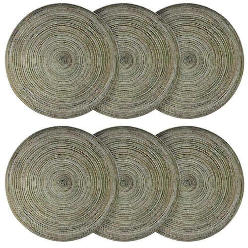 Conjunto Jogo Americano Redondo 38cm Sousplat Verde Mesclado - 6 Lugares O Conjunto Jogo Americano Redondo 38cm Sousplat Verde Mesclado é composto por seis lugares americanos redondos de 38 cm de diâmetro, fabricados em polipropileno e poliester. A elegância é o destaque do conjunto, que proporciona requinte ao dia a dia. O conjunto é ideal para compor a decoração do sua mesa com muita elegância e praticidade. Fabricado em material resistente, este conjunto vai surpreender suas visitas Veja as fotos do produto em destaque e surpreenda-se. O Conjunto Jogo Americano Redondo 38cm Sousplat Verde Mesclado é produzido com materiais de alta qualidade e vêm com 6 lugares, sendo um jogo completo prontinho para transformar sua mesa de jantar. Características: - Conjunto Americano fabricado em polipropileno e poliester, sendo composto por 6 peças.- Tamanho de 38cm, ideal para mesa posta.- Peças produzidas artesanalmente com material resistente e durável.- O design do conjunto é elegante e sofisticado, podendo ser usado em qualquer ocasião. Especificações: - Marca: Mimo- Tamanho: 38cm de diâmetro- Material: polipropileno/poliester- Cor: verde mesclado- Quantidade: 6 peças