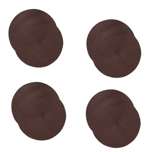 Jogo Americano Redondo na cor Chocolate Imagine, sua mesa, bem montada. Composição: 75% Polipropileno 25% Poliéster Quantidade: oito 8 unidades Diâmetro: 38 cm Atenção para os Cuidados Lavar manualmente. Não alvejar. Não secar em tambor. Não passar. Não limpar a seco. Ean: 7427014029361