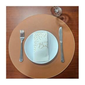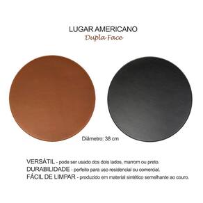 Jogo americano dupla face e mini sousplat produzidos em material sintetico que lembra o couro. Acabamento com acabamento nos dois lados. A textura do material chama a atencao pelo visual e pela funcionalidade. Para manter a durabilidade, limpe apenas com pano seco ou levemente umido. Nao usar alvejante. Pode ser utilizado em ambientes residenciais ou comerciais.