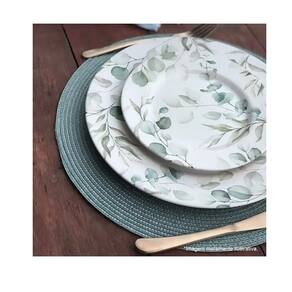 Jogo Americano Redondo Verde Suculenta - 4 Unidades Jogo Americano Redondo Verde Suculenta Composição: 100% Poliéster. Quantidade: quatro 4 unidades Diâmetro: 38 cm Atenção para os Cuidados Limpar manualmente. Não alvejar. Não secar em tambor. Não passar. Não limpar a seco.