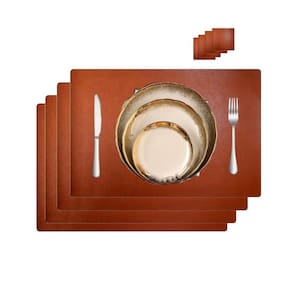 Jogo americano retangular 24 pçs couro + suporte para copo Cor: caramelo Tamano: 43x30 Jogo americano couro retangular + porta copos