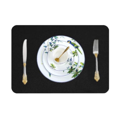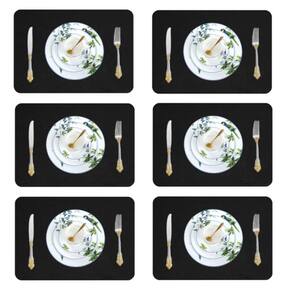 Jogo americano sousplat retangular 50 pçs limpa facil couro Cor: preto Tamano: 43x30 Jogo americano couro retangular + porta copos