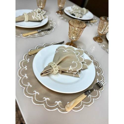 Jogo Americano Sparta Bordado 12 Peças - Avelã Mesa De 6 Lugares - Bege
