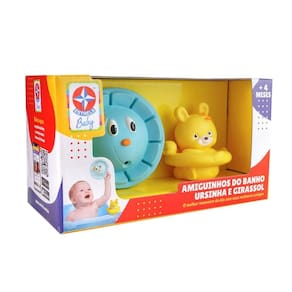 Jogo Amiguinhos Do Banho-ursinha E Girassol - Estrela Amiguinhos do Banho é um kit de banho composto por 2 personagens de vinil decorados: a Ursinha e o Girassol. Com eles, a criança poderá brincar dentro ou fora do banho. O melhor momento do dia com seus melhores amigos! Idade recomendada (RECOMMENDED_AGE_GROUP): + 4 meses | Código Inmetro: 013 246 / 2022