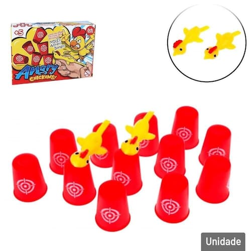 Jogo Angry Chickens 14 Peças Mire e Atire Entre na ação com o Jogo Angry Chickens Mire e Atire, uma diversão envolvente que traz o clássico conceito de mira e precisão com um toque divertido! Inspirado em jogos de habilidade, este conjunto oferece uma experiência emocionante e desafiadora para jogadores de todas as idades.\nO jogo inclui 14 peças, elementos como o Frango que representam as "angry chickens" e os alvos são Copos com Mira que você deve acertar. O objetivo é simples: usar a habilidade de mira o Frango para lançar e atingir os Copos designados, desafiando-se a acertar o maior número possível e alcançar a pontuação mais alta.\nCada peça é projetada para ser fácil de manusear e lançar, enquanto os alvos proporcionam uma variedade de desafios. Feito com materiais duráveis e seguros, o Jogo Angry Chickens é perfeito para competições em grupo, diversão em família ou atividades recreativas em festas e eventos.\nEspecificações: Marca : ARK\nTipo de material : Plástico\nCores ou Estampa : Colorido\nDimensões do Produto : 23,5 X 16,5 X 5,5 CM\nDimensões da Embalagem : 23,5 X 16,5 X 5,5 CM\nPeso Bruto (Gramas) : 0.181