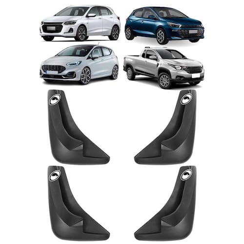 O Kit conta com duas lameiras dianteiras e duas traseiras, fabricadas em plástico resistente e durável, disponível na cor preta e com excelente acabamento para você instalar com facilidade no seu carro. Conta com APLICAÇÃO UNIVERSAL e encaixe sob medida.